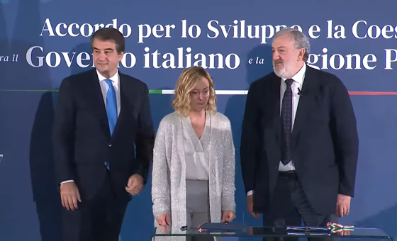 Il Presidente del Consiglio dei ministri, Giorgia Meloni, ha sottoscritto a Palazzo Chigi l’Accordo per la coesione per la Campania con il Presidente della Regione, Vincenzo De Luca.