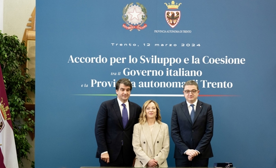 Firmato l’Accordo per lo Sviluppo e la Coesione tra la Presidenza del Consiglio e la Provincia Autonoma di Trento: a siglare l’intesa, presso la sala Depero del palazzo provinciale il Presidente del Consiglio Giorgia Meloni con il Presidente Maurizio Fugatti per