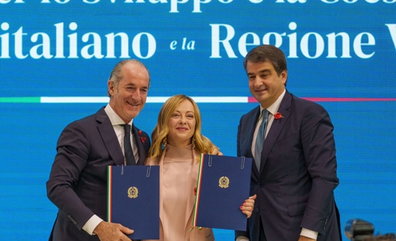 “Con la firma odierna dell’Accordo per la coesione tra il Presidente del Consiglio Giorgia Meloni ed il Presidente della Regione Veneto Luca Zaia prosegue il nuovo corso per un approccio più efficiente e responsabile all’uso delle risorse del Fondo di Sviluppo
