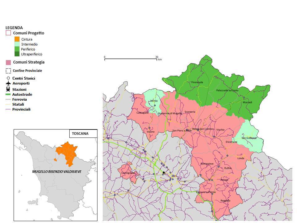 La Strategia dell’Area Valdarno, Valdisieve, Mugello e Val di Bisenzio è riferita ad un territorio composto da 5 Comuni, con una popolazione complessiva di circa 16.000 abitanti. La strategia di area si pone l’obiettivo di ridurre il costo del vivere in montagna e, allo stesso tempo, rendere più solide le opportunità legate a questo territorio.