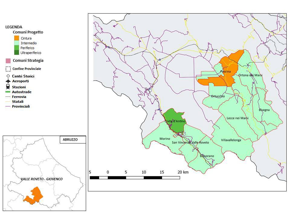 dilavata a valle, ad un incombente senso di “fallimento”, con gravi e complesse criticità, possa costituire l’elemento rigenerante, nel rapporto con le persone e la natura, per la nostra vita futura. L’Area è composta da 12 comuni: Pescina, Balsorano, Bisegna, Gioia dei Marsi, Lecce nei Marsi, Morino, Ortona dei Marsi, Ortucchio, San Benedetto dei Marsi, San Vincenzo Valle Roveto, Villavallelonga, Civita d’Antino. Valore complessivo della Strategia di Area è pari a 7.520.000,00 euro. La copertura finanziaria degli interventi previsti dalla Strategia di area è assicurata dalle seguenti risorse: