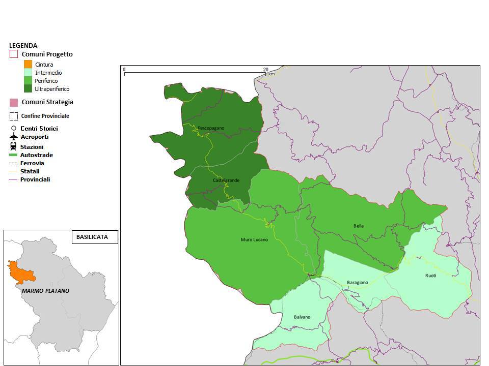L’Area del Marmo Platano è composta da 7 Comuni, con una popolazione di circa 21.000 abitanti, ed è caratterizzata da un preoccupante declino demografico e socioeconomico. Negli ultimi anni sono però visibili segnali di inversione di tendenza che la strategia di area intende rafforzare e rendere stabili. Elemento di particolare rilievo è anche rappresentato dal fatto che la strategia, e gli interventi in essa ricompresi, sono stati definiti durante il periodo dell’emergenza sanitaria, ma anche sociale ed economica, conseguente all’epidemia COVID 19.