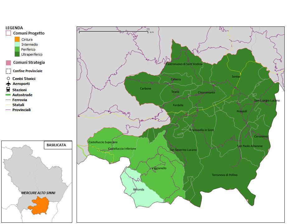 L’obiettivo della Strategia è il riequilibrio del saldo naturale: riportare il valore nell’arco di un quinquennio da - 6,7% al minor valore tra quelli delle 4 aree interne lucane (- 4,2% del Marmo Platano) per poi tendere alla parità entro il decennio. L ’area è la più estesa (oltre 950 Kmq) e la più popolosa (33 mila abitanti) della 4 aree lucane.