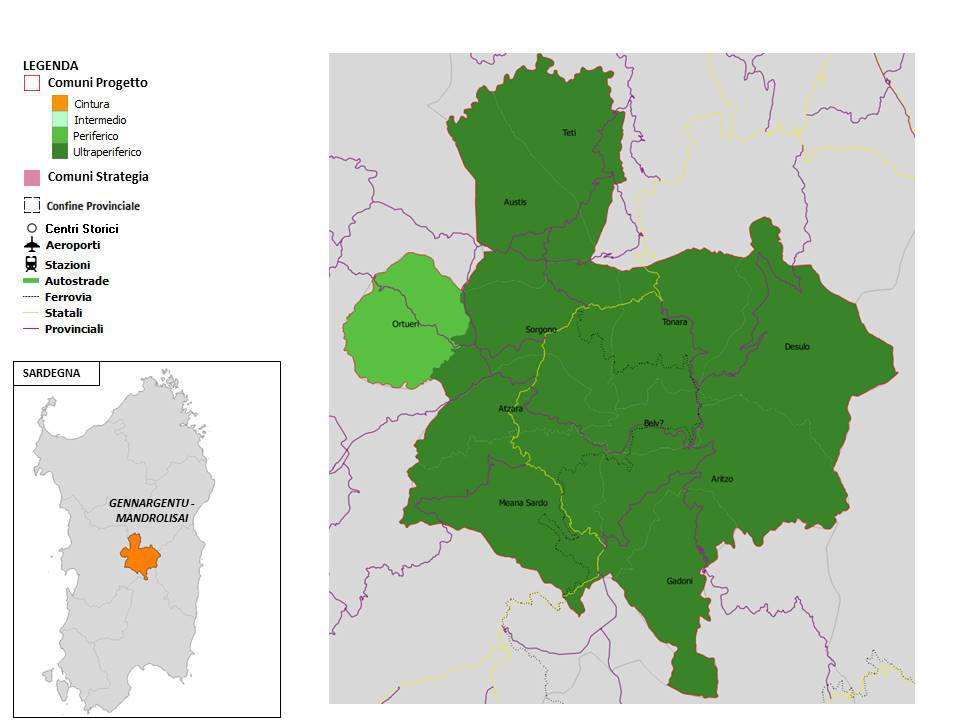 L'obiettivo della Strategia dell'area interna Gennargentu Mandrolisai è garantire "una vita di qualità nel cuore della Sardegna". L'area - che occupa una superficie di 563 chilometri quadrati, il 2,3% della superficie regionale - è costituita da 11 Comuni, nei quali vivono 14.351 abitanti (l'1 % del totale dei sardi).