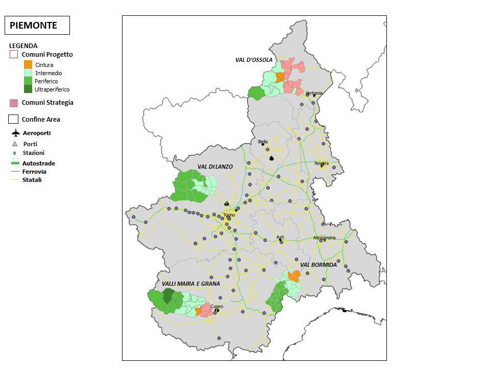 Nella presente sezione si riportano, articolate per ripartizione territoriale, le sintesi e i documenti sulle singole Strategie d'Area approvate situate all'interno del territorio della Regione Piemonte: Val Bormida, Val di Lanzo, Valli dell'Ossola e Valli Maira e Grana.