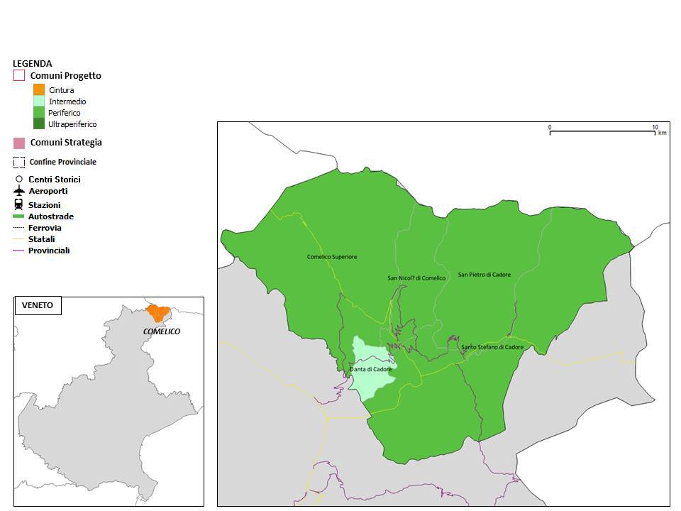 L’area del Comelico è situata nella estremità più settentrionale del Veneto e della provincia di Belluno. L’ambito è costituito da 5 Comuni, tutti classificati come "aree interne". Sono Comelico Superiore, Danta di Cadore, San